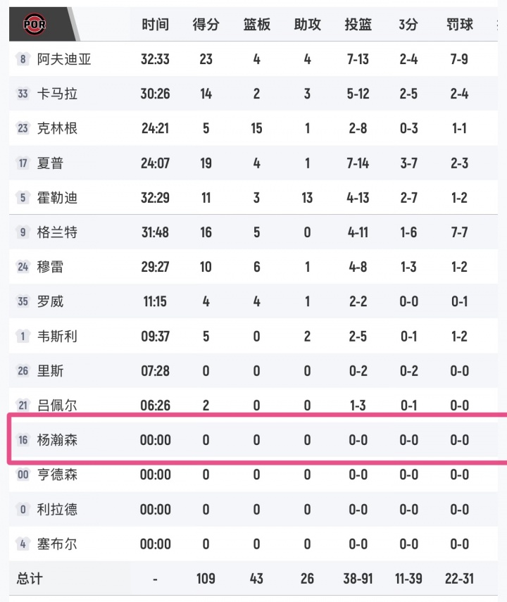 今后会是常态?杨瀚森是全队大名单中唯一未获得出场时间的球员