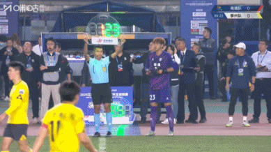 第90分钟,南通队换门将,蔡天龙替补登场。↓